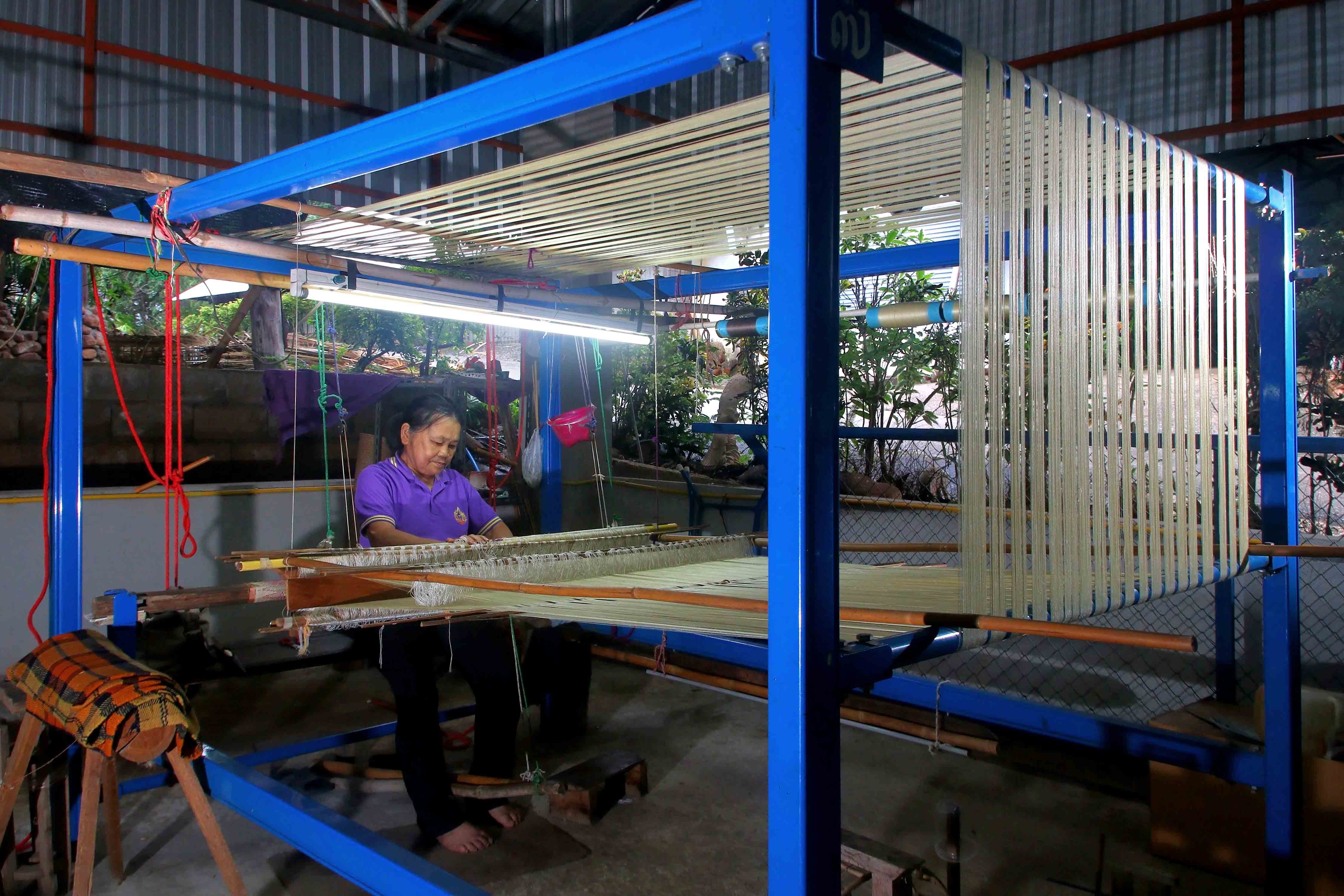 4. งานกลุ่มทอผ้า งานที่ดำเนินได้แก่ การเบิกเส้นไหมและฝ้ายจากกองศิลปาชีพแจกจ่ายให้กับสมาชิกทำการทอ ได้แก่ ทอผ้าฝ้ายพื้น, ผ้าฝ้ายลายดอก ,ทอผ้าไหมลายยกดอกต่างๆโดยชิ้นงานส่งไปยังกองศิลปาชีพเพื่อประเมินราคา สมาชิกจะได้รับค่าตอบแทนเป็นเงินรายวันและค่าชิ้นงานตามความสามารถของตัวเอง